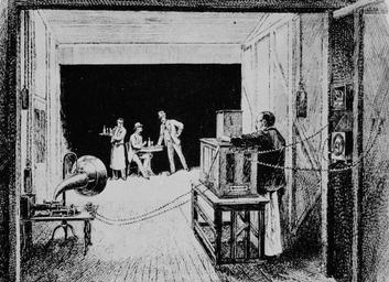 Corbett and Courtney before the Kinetograph by Thomas A. Edison, filmed by W.K.L. Dickson September 7, 1894, in Edison's Black Maria studio originally at 48 fps. Description from the F.M. Prescott catalog: "This fight consists of six rounds, each round on a film 150 feet long. It is not a fac-simile [sic] or a "fake" of any description, but an actual contest between James J. Corbett, former champion of the world, and Peter Courtney." MPEG 4022 from Library of Congress, America at Work, America at Leisure: Motion Pictures from 1894 - 1915 (Duration: 0:08 at 30 fps)