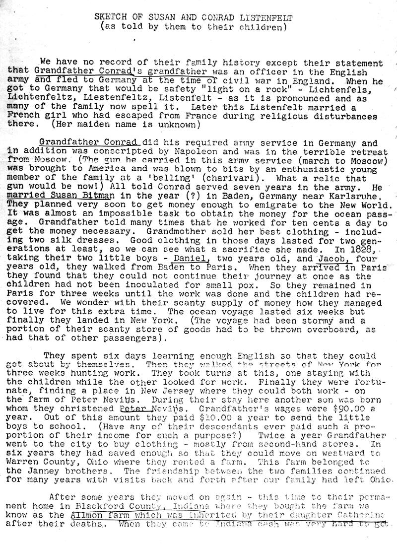 Lichtenfeltz, Liestenfeltz, Listenfelt - as it is pronounced and as many of the family now spell it. Later this Listenfelt married a French girl who