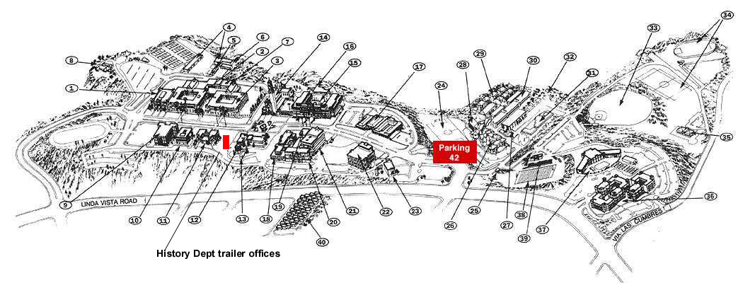 The Department of History is on the second floor of the Kroc Center for Peace and Justice (red square on larger map). Parking is available in the Parking Structure #42 (red square on larger map). One-day parking permits are available at the kiosks at the West and East entrances, and trams are available from outlying parking areas (see Parking Services). See also the San Diego region map or USD Location & Maps.