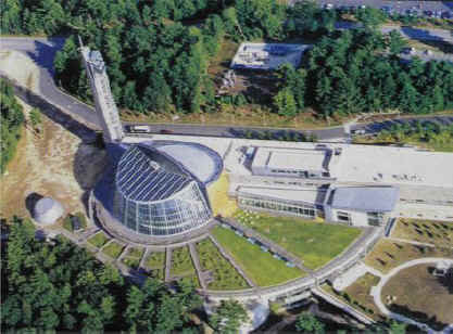 aerial view of Mashantucket Pequot Museum and Research Center that opened 1998