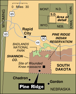 Poverty is taking an ever-bigger toll on health. Pine Ridge's infant mortality rate is almost three times the national average. Alcoholism, the scourge of indigent Indians, is as entrenched as ever. Doctors say that for the first time, they are spotting adult-onset diabetes, which usually strikes people past 40, in much younger patients. "I just saw a 12-year-old who has it," said Dr. David Mulder, the reservation hospital's chief of staff. Young people were not getting that five years ago, he said. "That's really frightening -- they're already insulin-resistant," he said. Yellow Hair explained: "A six-pack of soda costs less than a gallon of milk. So mothers get the soda and put it in their babies' bottles and shake it up to get the fizz out. It starts there." Kibbe Conti, the hospital's nutritionist, said that for these Northern Plains Indians, who have a genetic predisposition for diabetes, "pop is poison." The blame for these conditions goes all around. The roots of the troubles lie in political pandering among tribal leaders, who must run for election every two years, and in corruption, the 19th-century treaties that shunted the Oglalas off richer lands, the cuts in state and federal support, and discrimination. In early May, the Justice Department penalized the nearby First National Bank of Gordon, Neb., for charging the Pine Ridge Sioux interest rates that were 5 percentage points higher than the rate paid by white customers off the reservation.