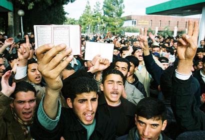 Jordanian students demonstrate carrying copies of the Quran at the entrance of the Jordan University in Amman on Sunday, March 23, 2003. More than 1000 students demonstrated against the U.S-led war on Iraq (AP Photo/Nader Daoud) -Sun Mar 23,12:50 PM ET